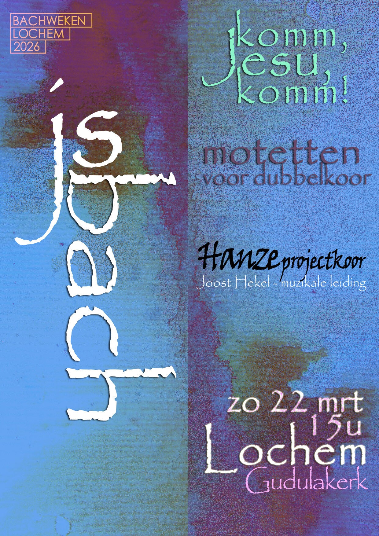 In de serie Bachweken Lochem voert het Hanze Project(dubbel)koor meerkorige motetten van Bach uit. Op het programma staan Jesu, meine Freude, Singet dem Herrn ein neues Lied en Komm, Jesu, komm.